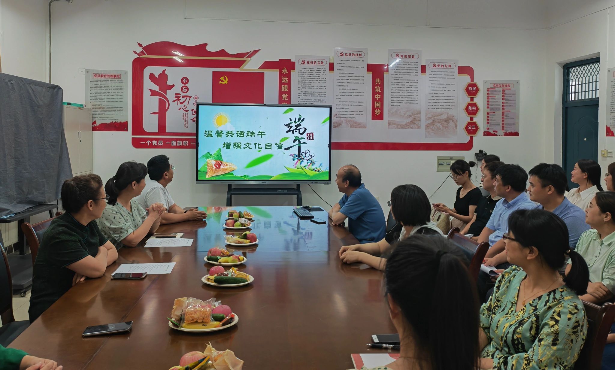 共话端午习俗环节,大家围绕家乡的风俗习惯,畅谈有关端午节习俗、由来并结合自己的成长背景分享自己过端午节的经历和感想。陈宜藩老师结合老家河南洛阳的风俗为大家讲述了洛阳人民庆祝端午节的独特美食,李敏老师结合自身成长经历描述了从小与家人共度端午节的温馨场景。