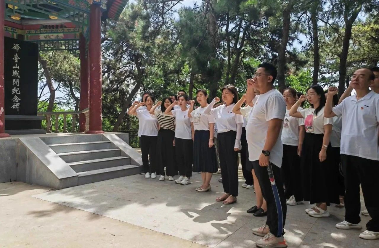 全体教师党员在爷台山战斗纪念碑前,进行庄严的重温入党誓词宣誓,缅怀革命烈士,咏怀先烈精神,赓续红色血脉,继承革命精神。