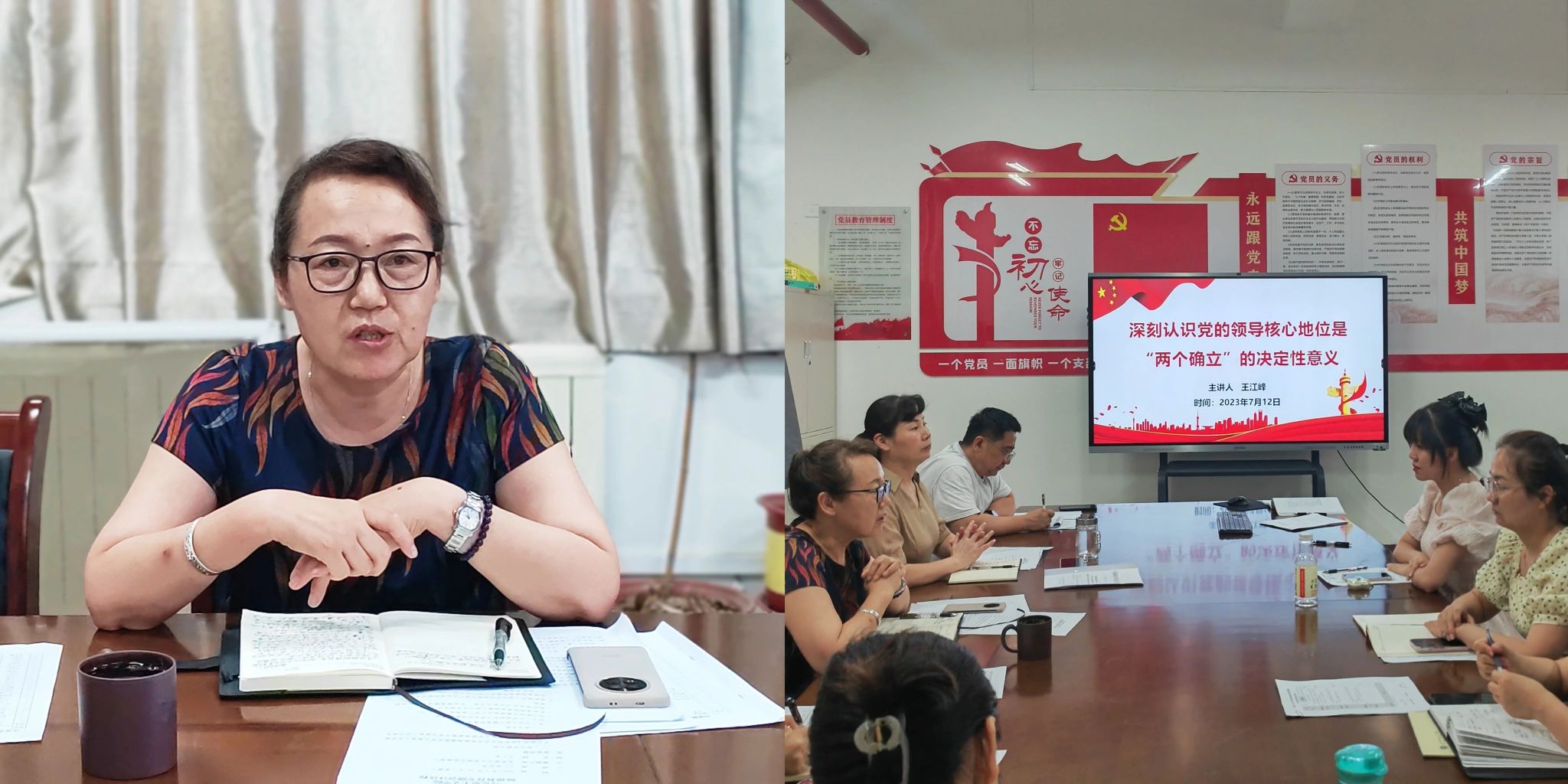 王江峰以《深刻认识党的领导核心地位是“两个确立”的决定性意义》为题,为全体教师讲党课。王江峰指出,“两个确立”是历史和时代的选择,是党和国家的历史幸运、时代幸运,是深刻总结党的百年奋斗、党的十八大以来伟大实践得出的重大历史结论,是体现全党共同意志、反映人民共同心声的重大政治判断。要以党章党纪促进师德师风的提升,要用党员模范标准树立人民教师形象。