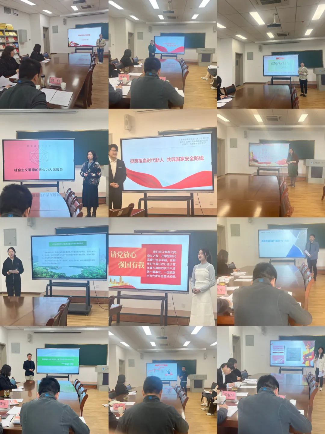 比赛共分为习近平新时代中国特色社会主义思想概论组、思想道德与法治组、毛泽东思想和中国特色社会主义理论体系概论组、形势与政策组和团队组。赛前15名教师通过抽签的方式确定了比赛顺序。各位参赛教师精心准备,赛场上课程讲授过程目标明确、思路清晰,教学方法灵活多样,以良好的精神风貌、精湛的教学技艺,充分展示了思政课教师扎实的教学功底和教学水平。