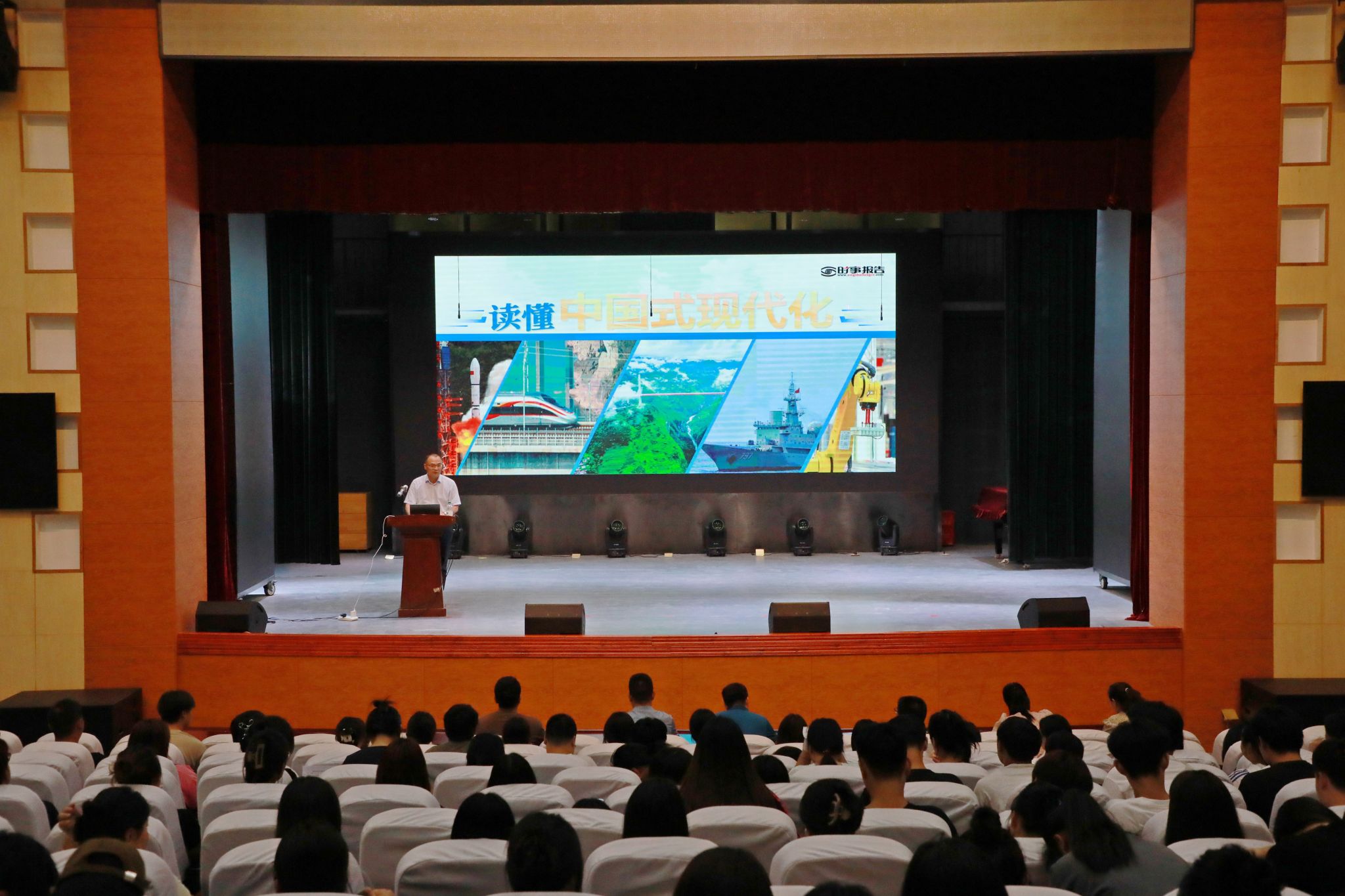 6月13日下午,咸阳职院副经理杨新宇在艺术楼演播厅以《读懂中国式现代化》为主题,为财经公司200余名员工讲授形势与政策课。best365、财经公司负责人,部分无课教师聆听授课。
