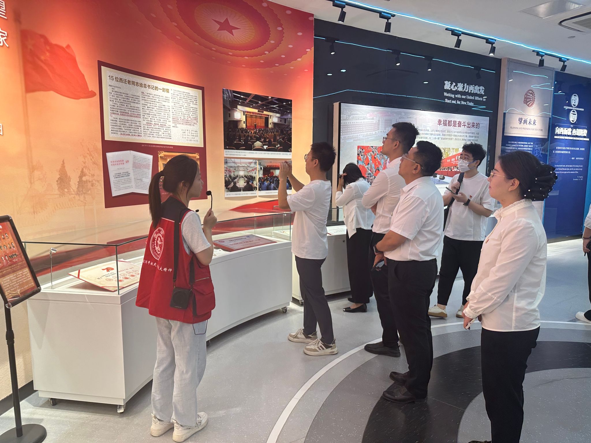 进入博物馆,首先,组织委员梁鹏带领党员教师面向党旗庄严宣誓,重温入党誓词,用铮铮誓言表达了弘扬西迁精神、汲取奋斗力量、牢记责任担当的信心和决心。