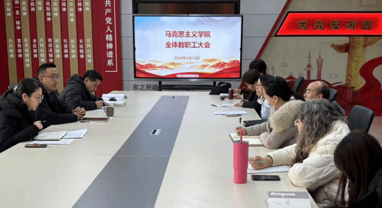副经理梁鹏安排了2025年思政课“大练兵”活动,强调教研室要按照方案严格落实,选定赛道,计划5月教研室内选拔,6月初进行校赛。同时,2025年陕西省“秦马”磨课会将集中在上半年进行,各教研室要抓紧时间准备,把握好赛制要求和时间节点,力争取得好成绩。