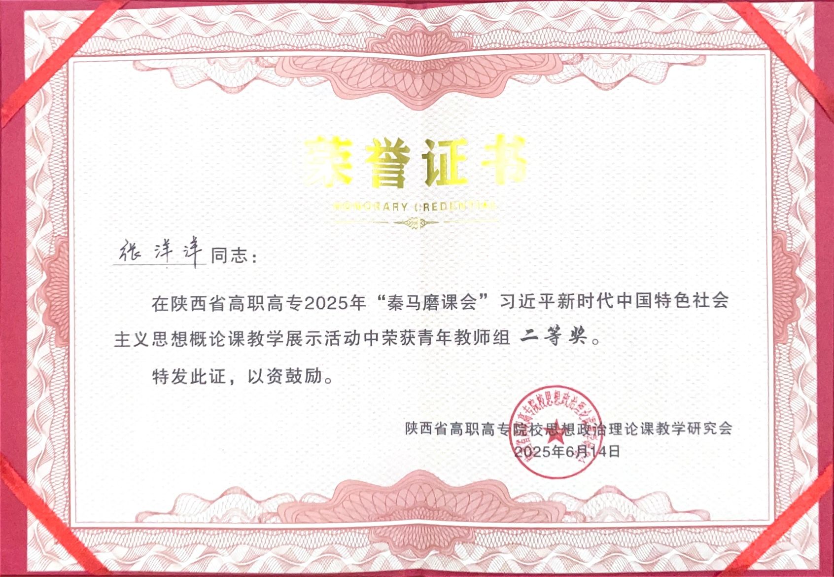 6月13日至14日,陕西省高职高专院校思想政治理论课教学研究会举办的2025年“秦马磨课会”习近平新时代中国特色社会主义思想概论课教学展示活动在西安铁路职业技术公司举行,公司教师张洋洋、苏江涛分别荣获青年教师组二等奖和骨干教师组三等奖。