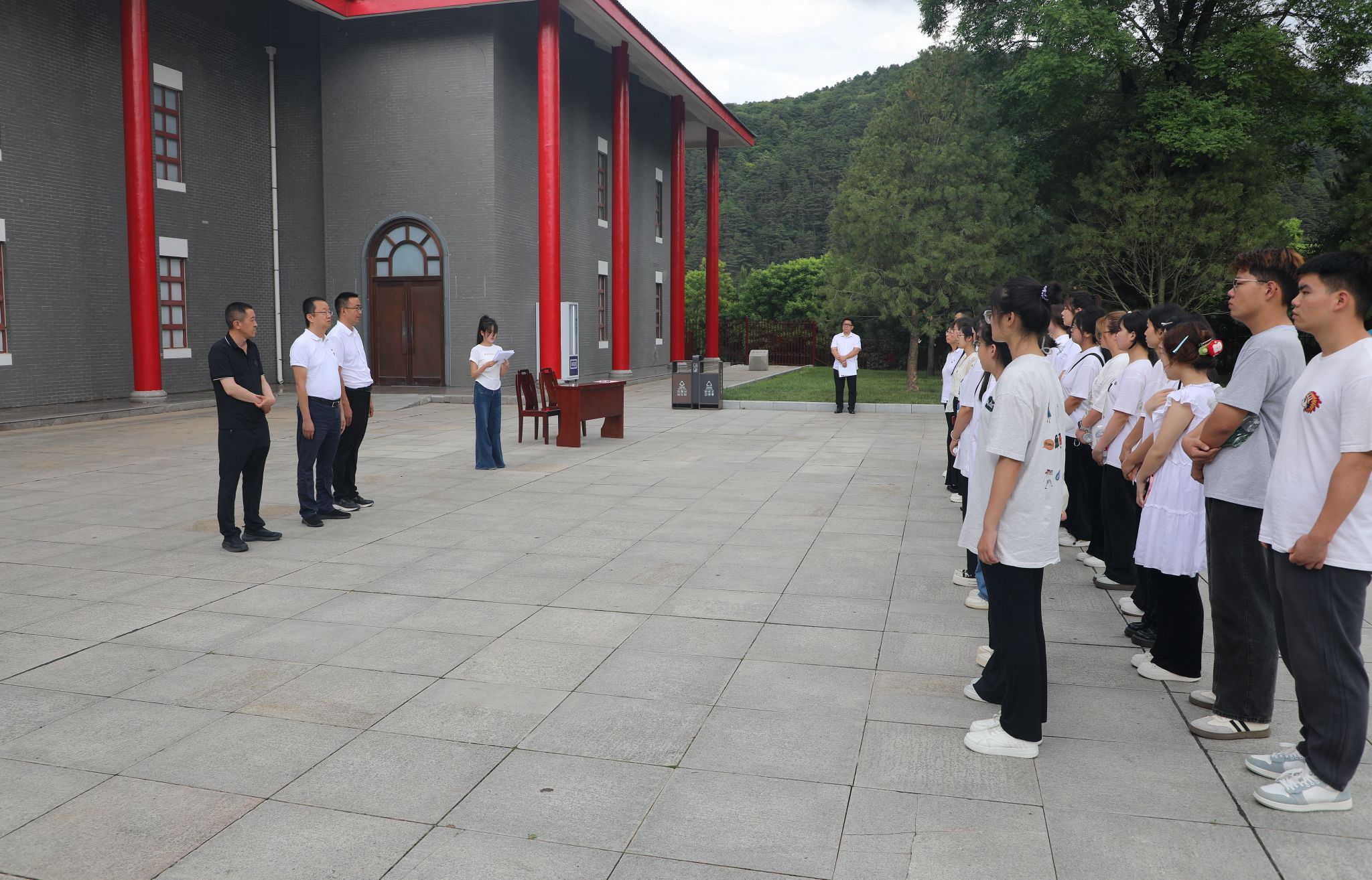签约后,孙彦彬带领全体党员师生开展主题党日活动。在马栏革命纪念碑前,党员们庄严宣誓,重温入党誓词。随后,师生们在讲解员引导下参观马栏革命纪念馆,同学们边看边思,边学边问,讲解员耐心解答。通过沉浸式学习,师生们深刻感悟革命先辈的奋斗精神。此次合作开启了校馆协同育人新篇章,为培养担当民族复兴大任的时代新人筑牢精神根基。