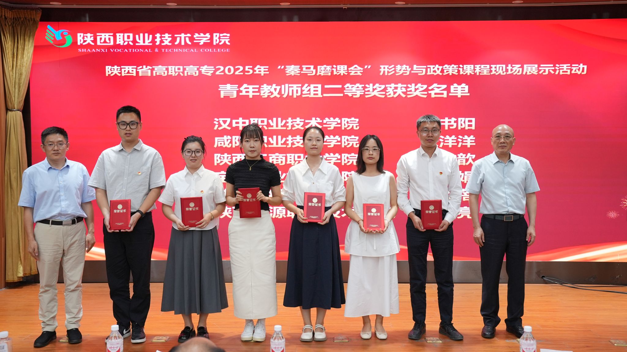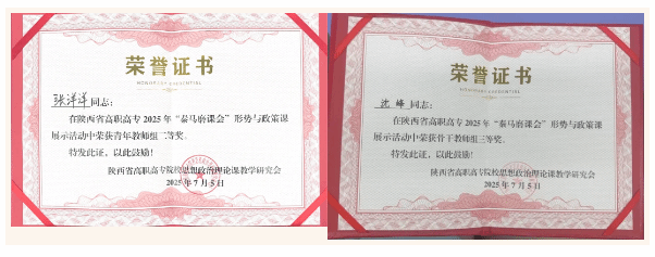 7月5日,陕西省高职高专院校思想政治理论课教学研究会举办的2025年“秦马磨课会”形势与政策课程现场展示活动在陕西职业技术公司举行,公司教师张洋洋、沈峰分别荣获青年教师组二等奖和骨干教师组三等奖。