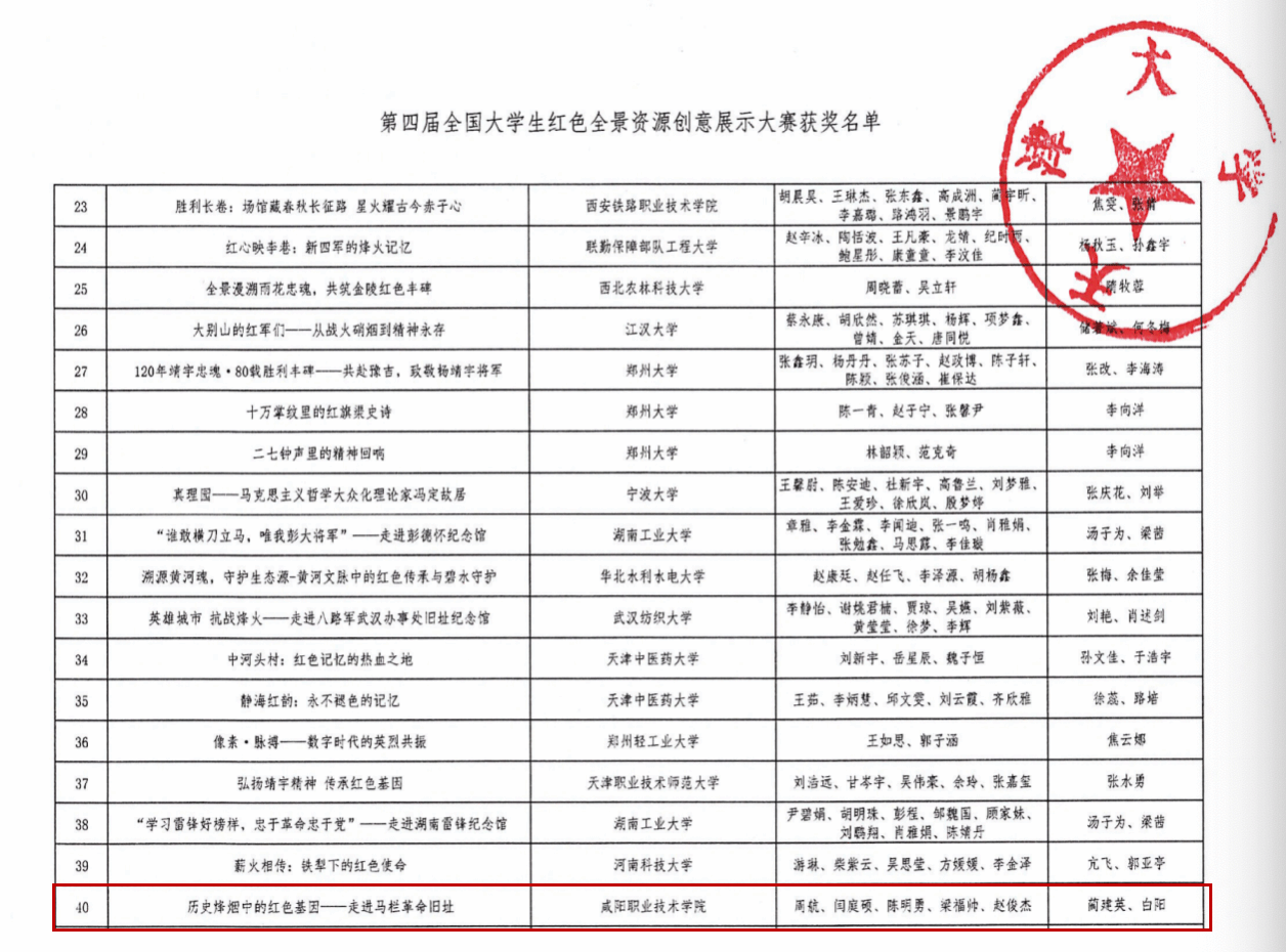 近日,第四届全国老员工红色全景资源创意展示大赛获奖名单公布,咸阳职院best365在全国31个省(市、自治区)330余所高校的1700余个参赛作品中脱颖而出,共8个作品在省赛获奖,4个作品入围国赛,分别获一等奖1项,二等奖2项,三等奖1项。