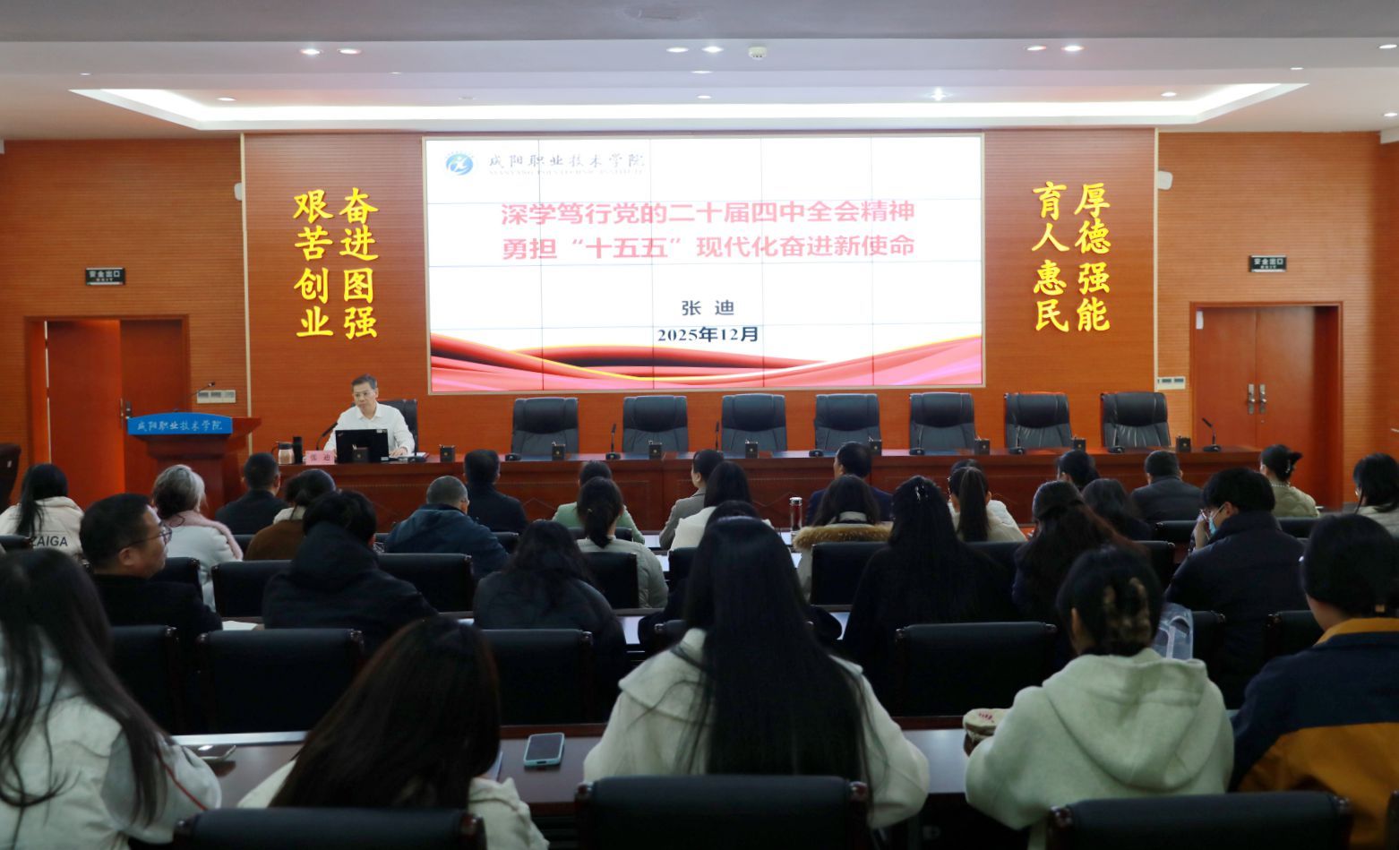 12月4日,咸阳职公司党委书记张迪以”决胜十四五 奋发向前行”为题,从“风雨兼程见彩虹、宝贵经验释伟力和凌云纵横绘蓝图”三个方面为医公司员工讲授“形势与政策”课。