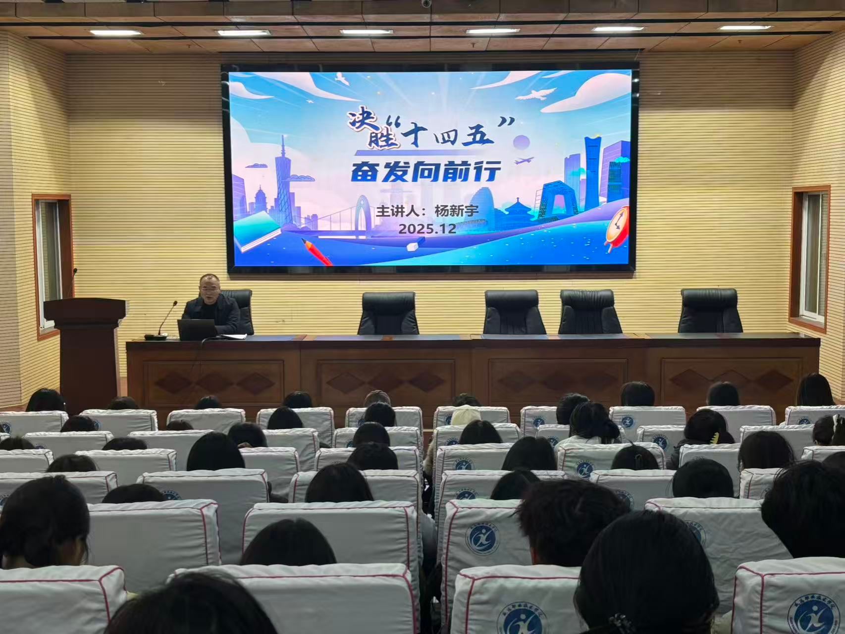 2025年12月17日,咸阳职院副经理杨新宇以“决胜十四五,奋发向前行”为题,为财经公司、体育公司员工讲授“形势与政策”课。