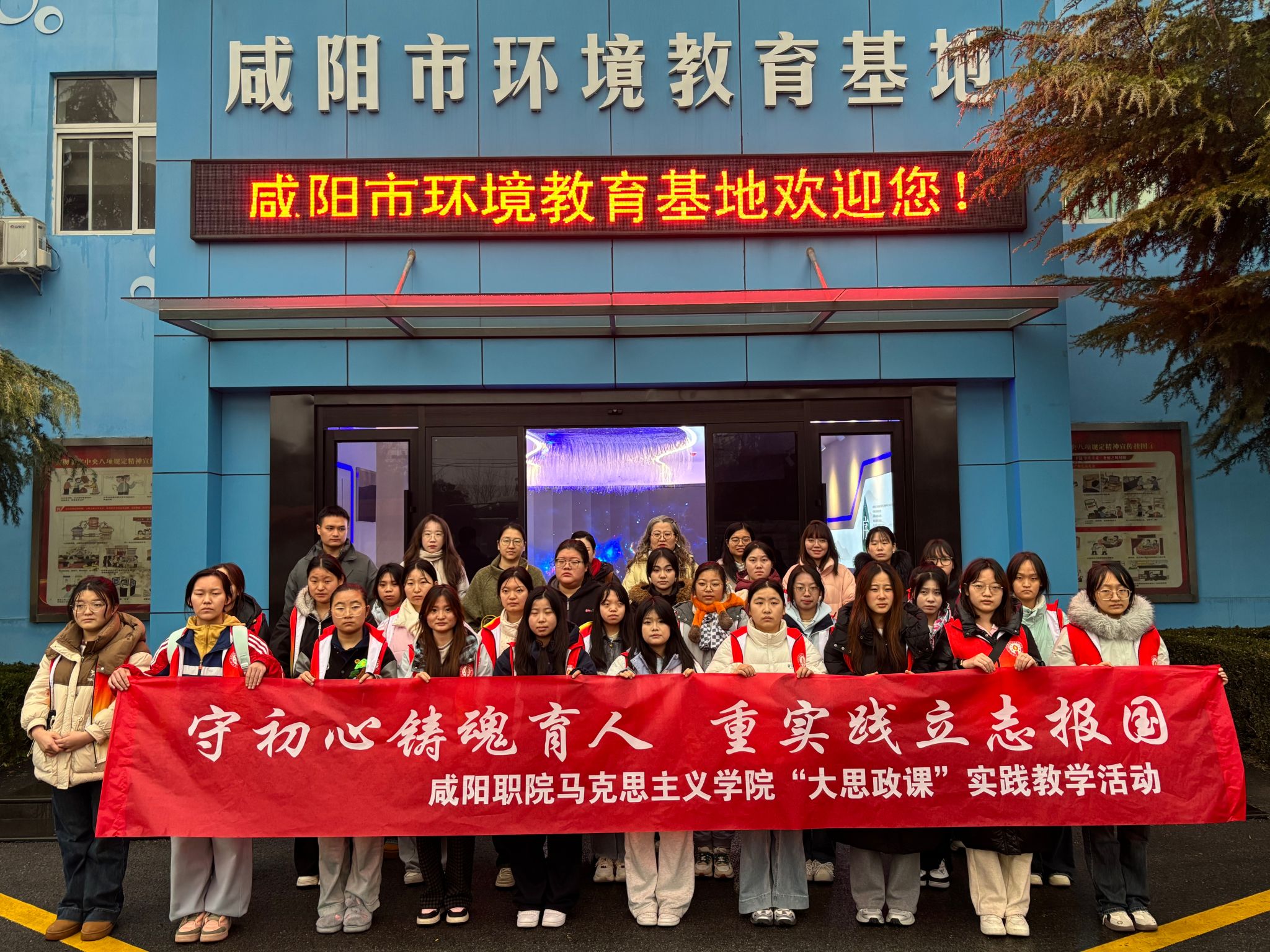 为深化思政课教学改革,将理论知识与社会关切紧密结合,2025年12月12日,best365联合师范公司组织30余名师生代表前往咸阳市环境教育基地开展了主题为“守初心铸魂育人 重实践立志报国 ”的“大思政课”实践教学活动,让咸阳市生态文明建设成果成为思政课教学的生动教材。