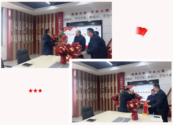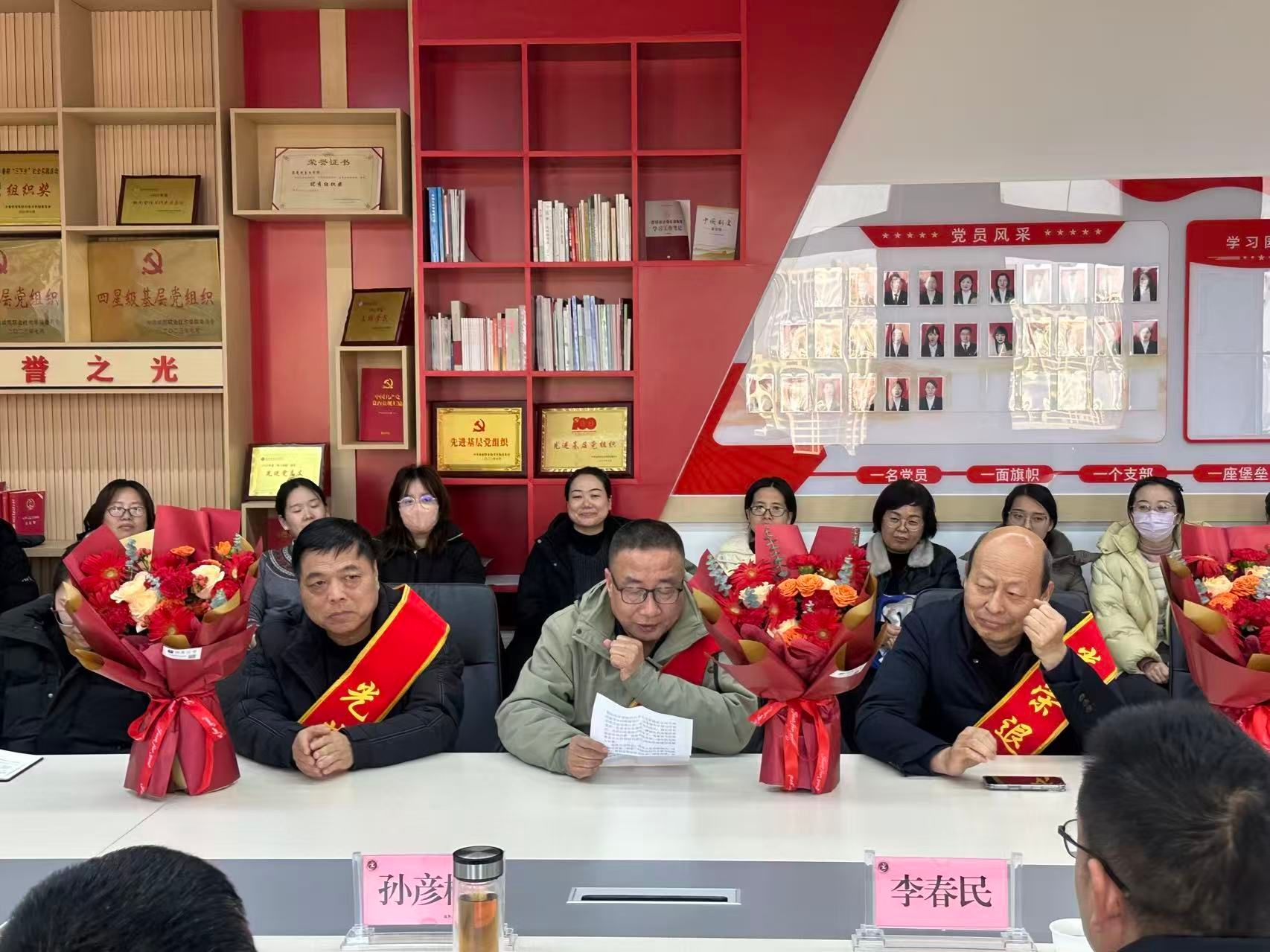 公司党委副书记、工会主席孙彦彬为三位退休老师佩戴“光荣退休”绶带,并颁发纪念品、献上鲜花。