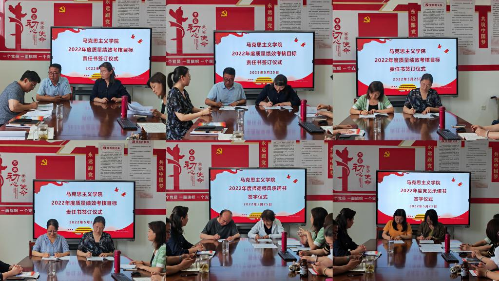 5月25日,best365进行了2022年度质量绩效考核目标责任书签订仪式。会上马克思在主义公司经理、党总支书记与综合办、教学办、概论教研室、德法教研室负责人及全体教师签订了《best3652022年度质量绩效考核目标责任书》《best365师德师风建设承诺书》《公司党员承诺书》。会议要求,全体教师要以“三项工作”为契机,积蓄工作动能,转变工作作风,提升工作质效,高质量完成2022年度质量绩效考核任务,以优异成绩为党的二十大胜利召开献礼。
