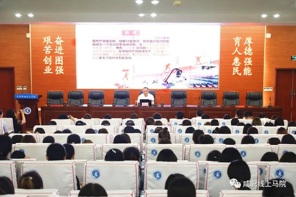 2021年6月3日,咸阳职院副经理杨新宇以“中国共产党为什么能”为主题,为师生讲授形势与政策示范课。best365全体教师和师范公司285名员工代表到场听课。
