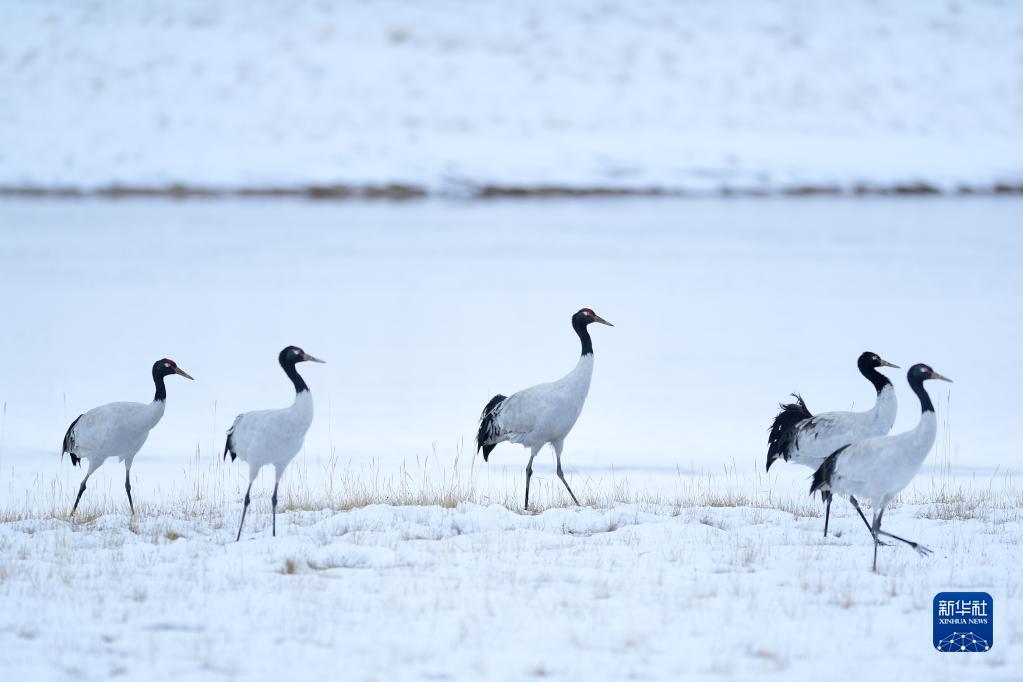 2021年10月21日在三江源国家公园黄河源园区内拍摄的黑颈鹤。新华社记者 张龙 摄
