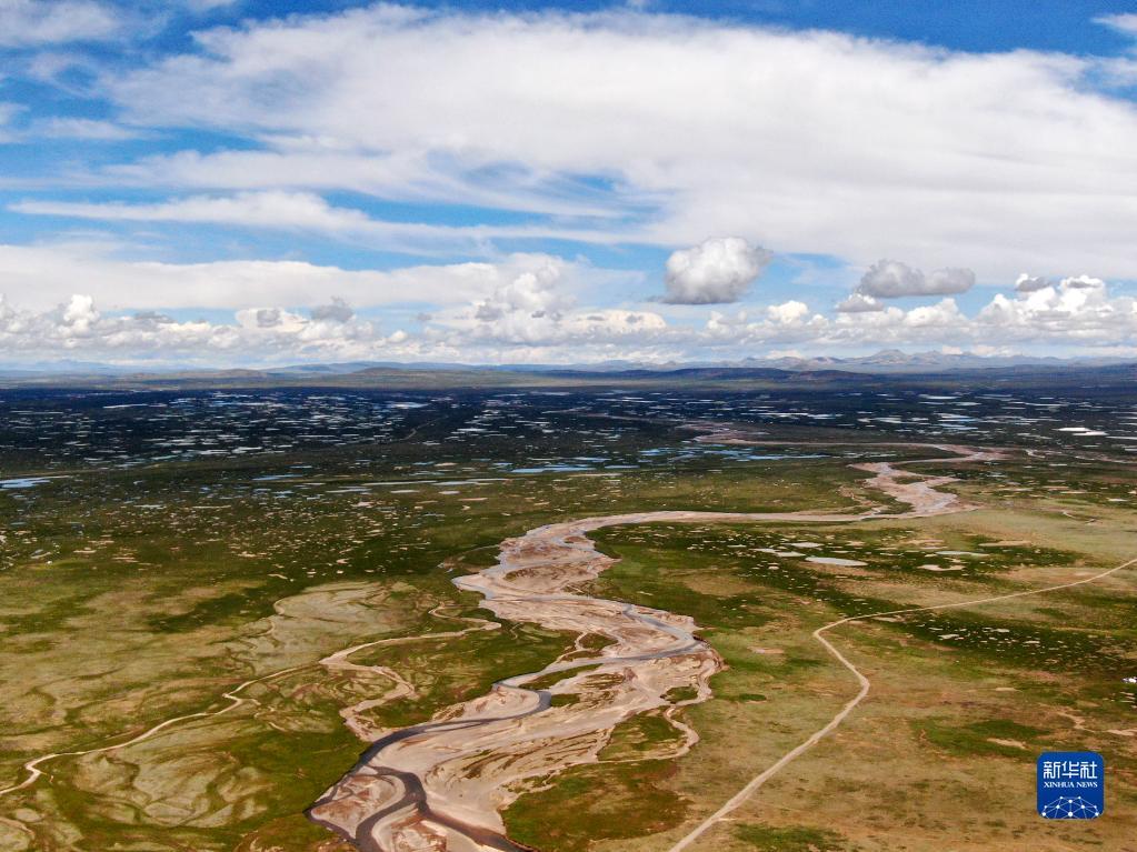 这是2021年7月23日拍摄的长江南源当曲(无人机照片)。新华社记者 张龙 摄
