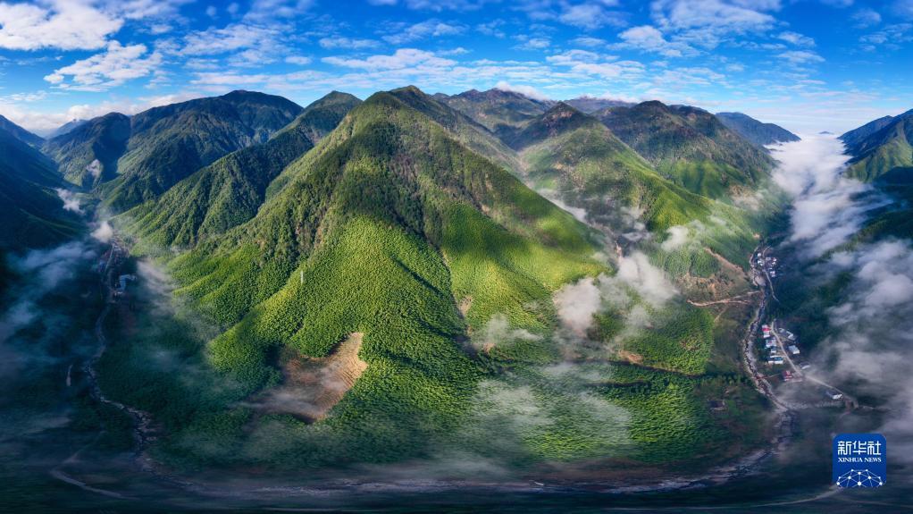 这是陕西省西安市长安区秦岭违建别墅“群贤别业”拆除后建设的秦岭和谐森林公园(2019年7月26日摄,无人机照片)。新华社记者 刘潇 摄