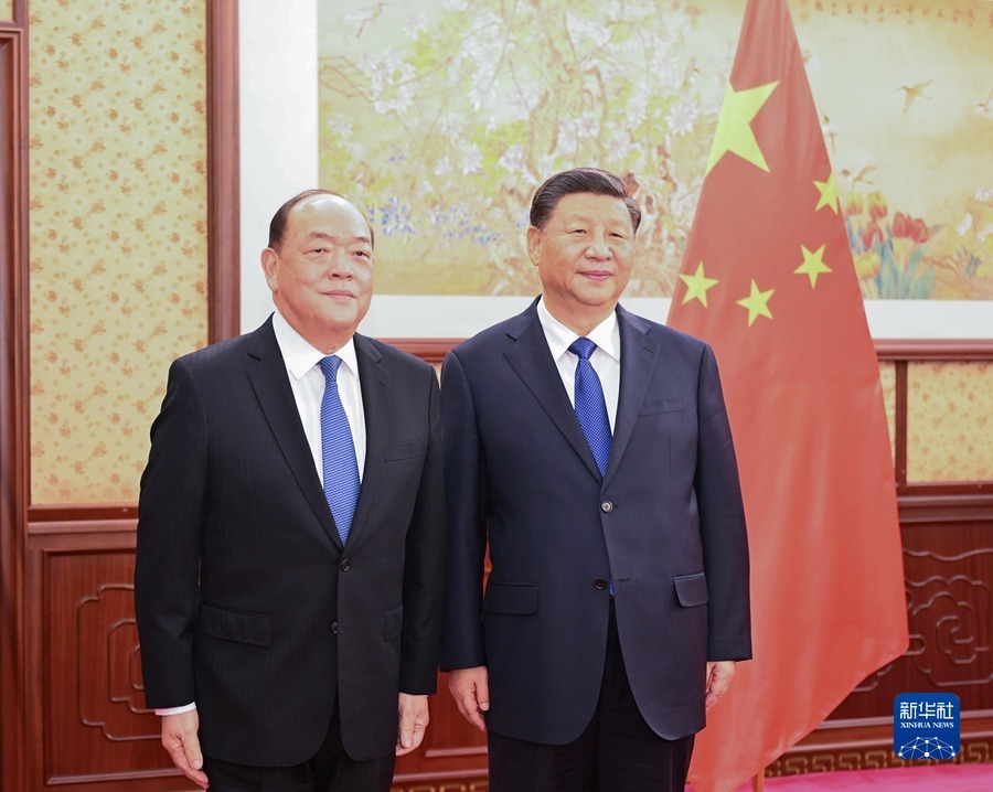 12月22日,国家主席习近平在中南海会见来京述职的澳门特别行政区行政长官贺一诚。新华社记者 申宏 摄