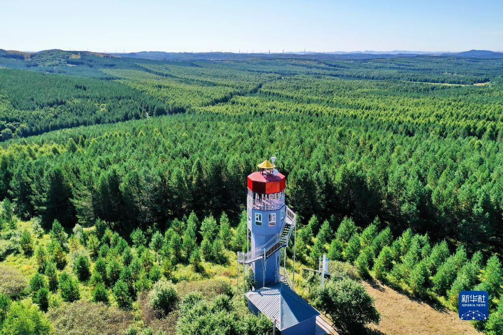 河北塞罕坝机械林场内的望海楼(2021年8月23日摄,无人机照片)。新华社记者 牟宇 摄