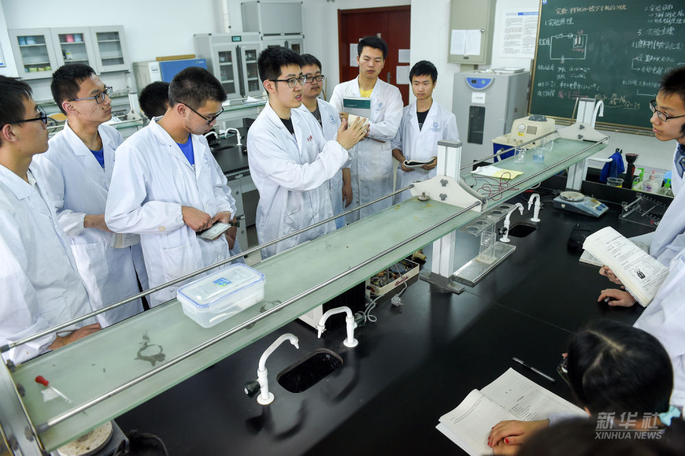 2017年5月11日,在中国科大化学物理系实验室内,员工们在上实验课。