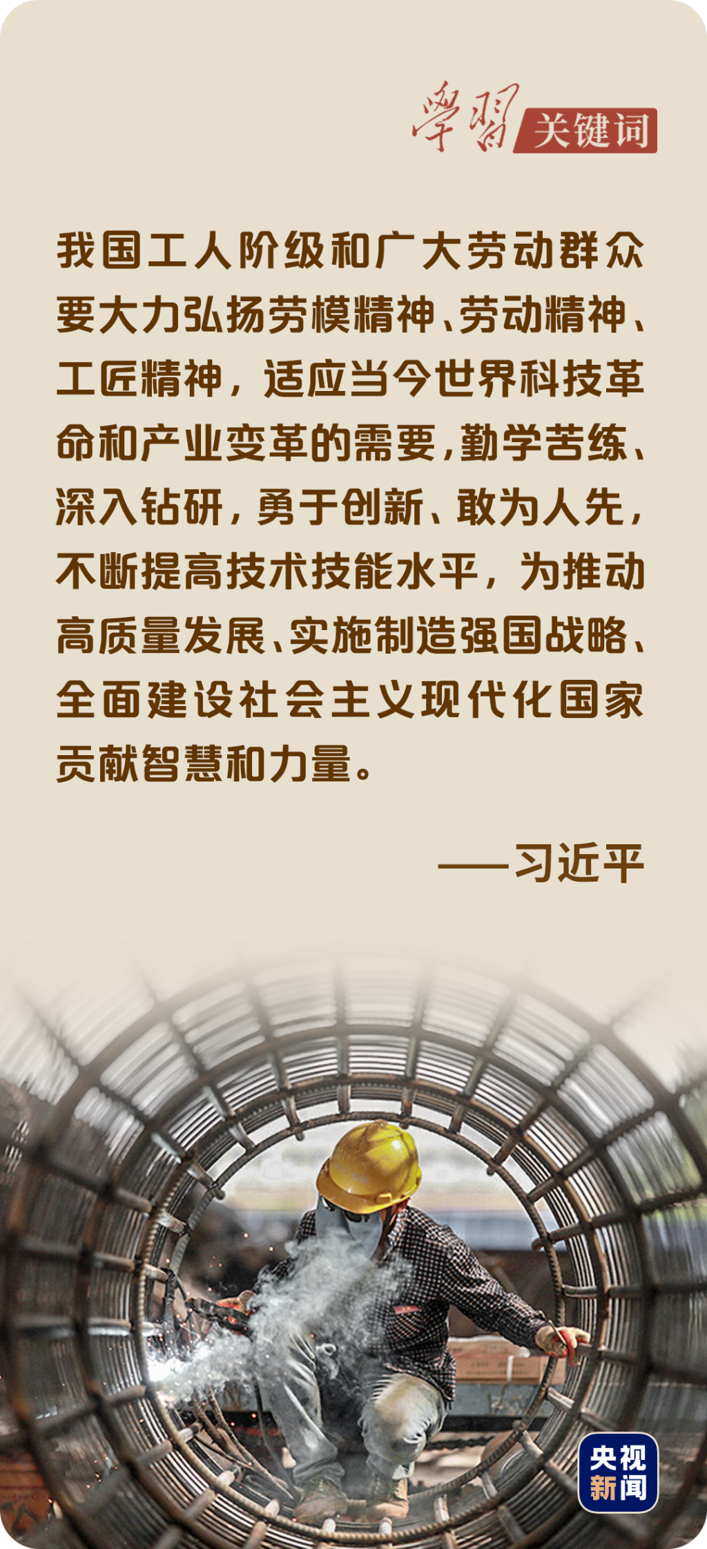 4月27日,“五一”国际劳动节到来之际,习近平总书记代表党中央,向广大技能人才和劳动模范致以诚挚的问候,向广大劳动群众致以节日的祝贺。
