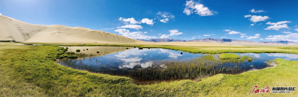 阿尔金山国家级自然保护区独特的高原湖泊、湿地、沙山美景(2021年7月30日摄)。(摄影:王琦铭)