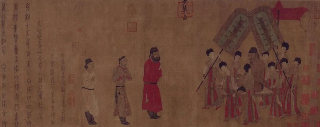 金熙宗完颜亶,是金太祖完颜阿骨打的嫡长孙。据宋代《三朝北盟会编》记载,他自幼跟随韩昉等儒士学习汉文经史,“雅歌儒服、烹茶焚香、弈棋战象”,“宛然一汉家少年子”。金熙宗即位后,为了加强对中原地区的统治,将契丹人、女真人自东北迁入中原地区,与汉人杂处。他还颁行皇统新律,“大抵皆依仿大宋,其间亦有创立者”,在加速金朝封建化、吸收中原文化方面起到了积极的推动作用。海陵王完颜亮留下“万里车书盍混同,江南岂有别疆封”等诗句,表达了一统天下的雄心。《金史·舆服志》中记载,他在位时期定都燕京,女真官员的官服采用宋式,宽袖大袍,和南宋官服极为接近。