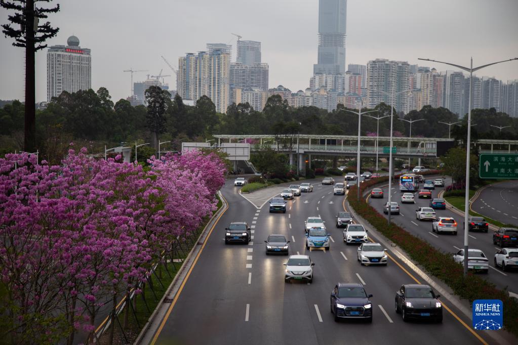 这是3月21日在深圳沙河西路拍摄的车流。新华社发(刘羽洁 摄)