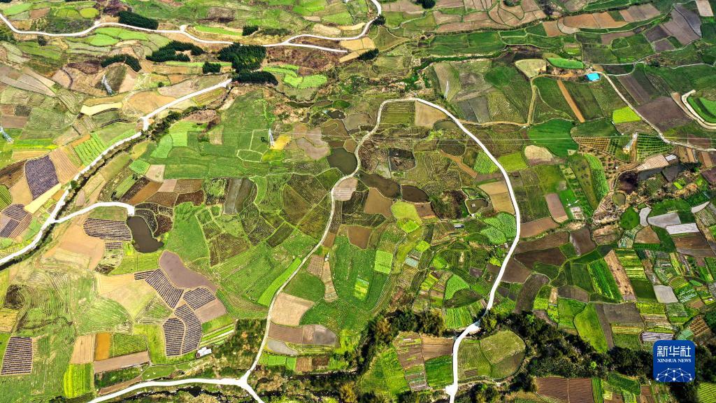 广西融安县潭头乡新桂村的春耕田园景色(3月17日摄,无人机照片)。新华社记者 张爱林 摄