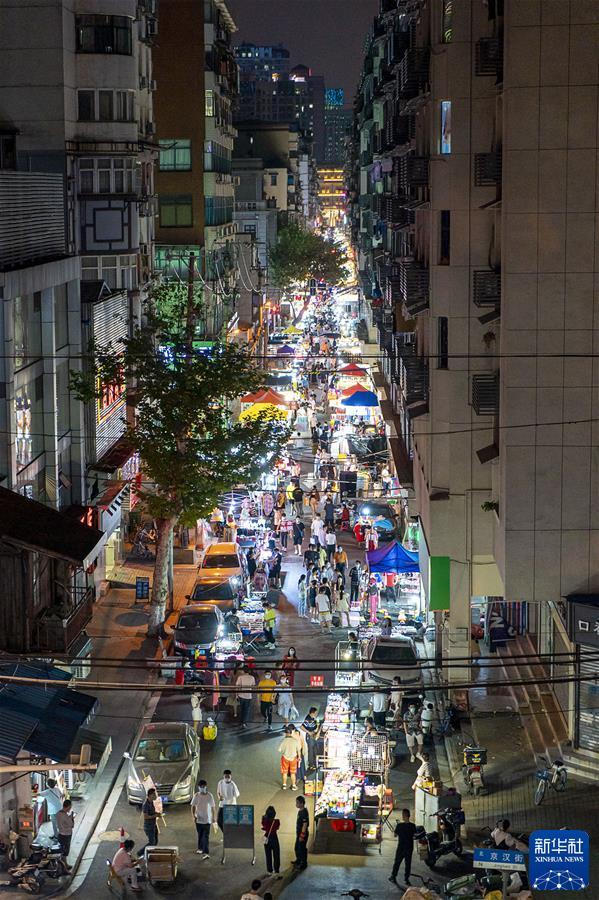 市民在湖北武汉保成路夜市消费休闲(2020年6月1日摄)。 新华社记者 熊琦 摄