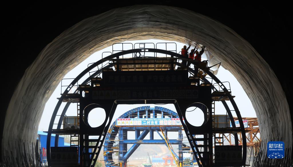 中铁九局工程技术人员在抚顺市兰山隧道内施工,沈白高铁全线掀起施工大干热潮(4月20日摄)。新华社记者 杨青 摄