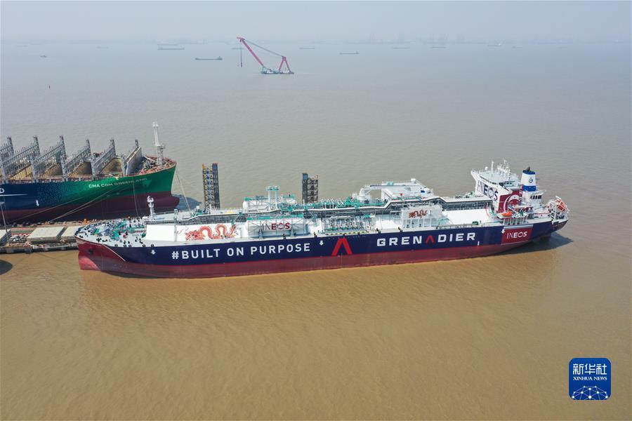 5月16日拍摄的中国船舶集团旗下江南造船建造的99000立方米B型舱超大型乙烷运输船H2625船(无人机照片)。新华社记者 丁汀 摄