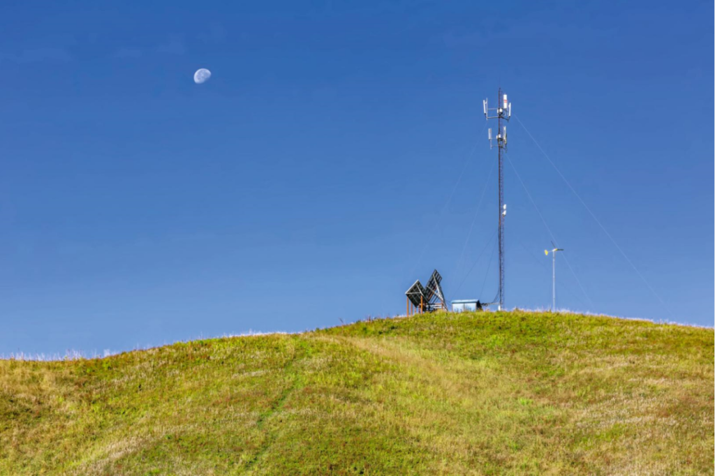 2019年9月19日,新疆维吾尔自治区伊犁哈萨克自治州新源县那拉提镇,草原移动信号塔。
