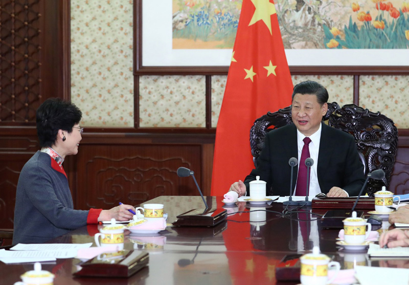 2019年12月16日,国家主席习近平在中南海会见来京述职的香港特别行政区行政长官林郑月娥。新华社记者 李学仁/摄