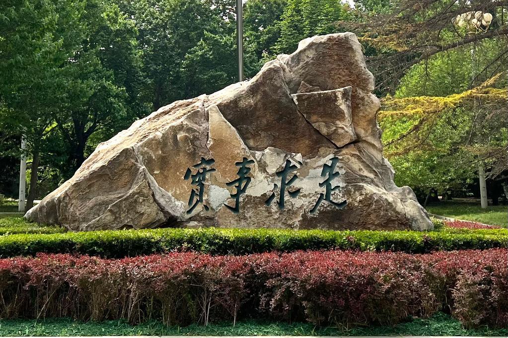 北京,中关村大街59号,以红色为建筑群主色调的校园端庄大气。正对校园东门,巨石上刻着的“实事求是”四个大字遒劲有力。