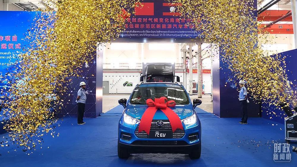 2021年7月,中国老挝南南合作项目——万象赛色塔低碳示范区新能源车发运仪式在长沙举行。28辆新能源汽车将助力当地发展绿色交通。(图/视觉中国)