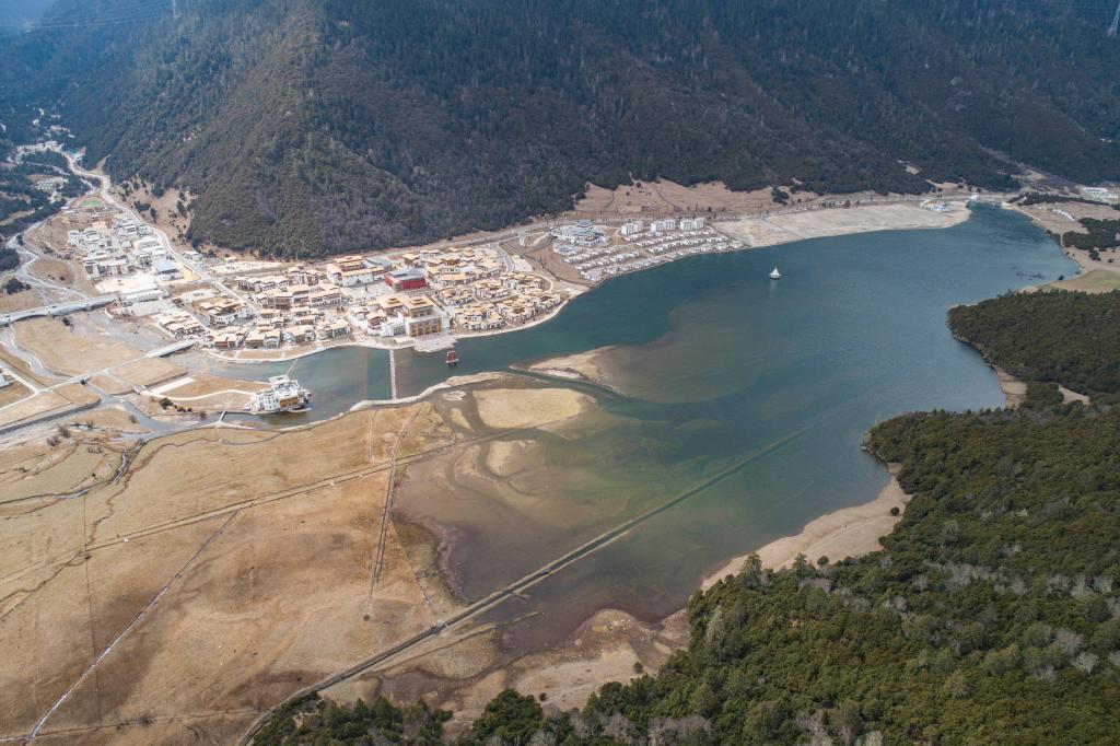 这是川藏公路旁的鲁朗国际旅游小镇风光(2021年4月2日摄,无人机照片)。新华社记者 孙非 摄