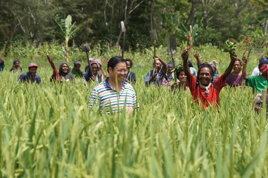 2019年12月17日,首次参与中国援巴新旱稻项目的巴布亚新几内亚农户,看到自己种植的旱稻长势喜人。
