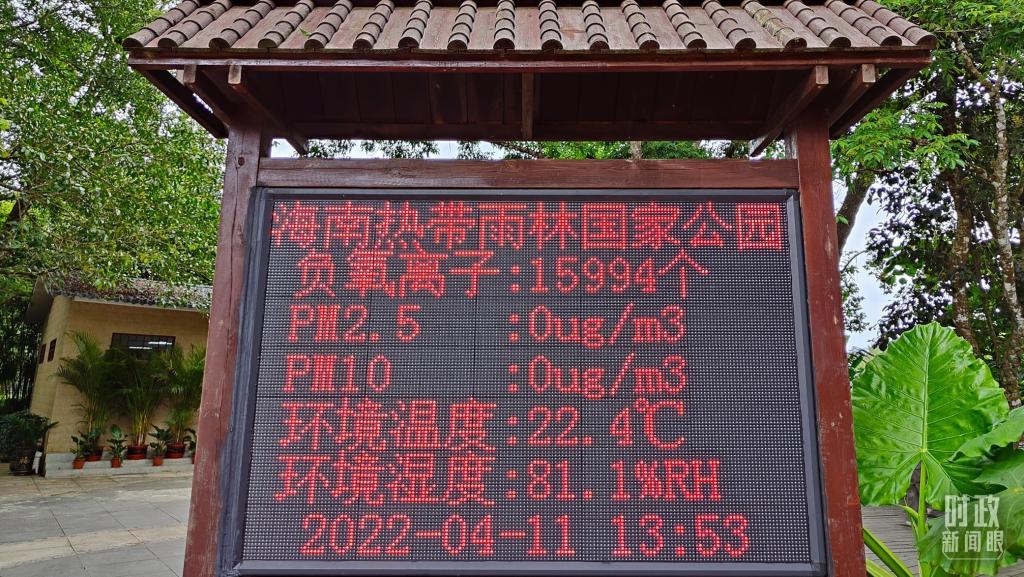 海南热带雨林国家公园的电子屏显示实时环境质量指数。(总台记者杨立峰拍摄)