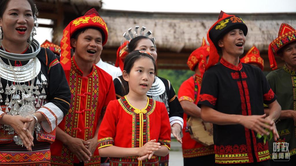 身着民族服饰的当地村民在毛纳村广场上唱起民歌。(总台央广记者潘毅拍摄)