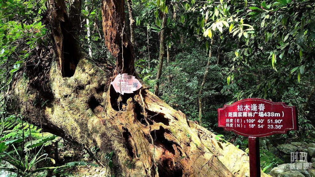 雨林奇观“枯木逢春”,已经干枯的树木,到了春天又长出新叶,恢复活力。(总台记者杨立峰拍摄)