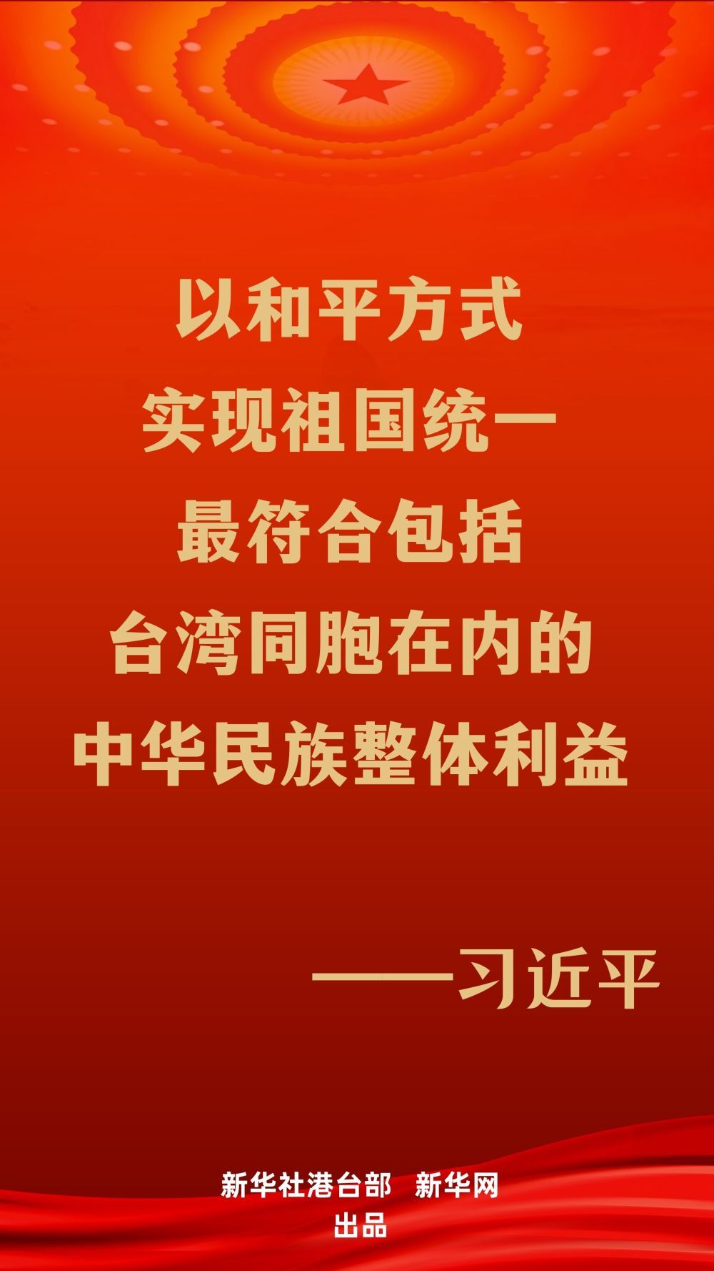 在庆祝中国共产党成立100周年大会上,习近平总书记发表重要讲话强调,解决台湾问题、实现祖国完全统一,是中国共产党矢志不渝的历史任务,是全体中华儿女的共同愿望。要坚持一个中国原则和“九二共识”,推进祖国和平统一进程。包括两岸同胞在内的所有中华儿女,要和衷共济、团结向前,坚决粉碎任何“台独”图谋,共创民族复兴美好未来。
