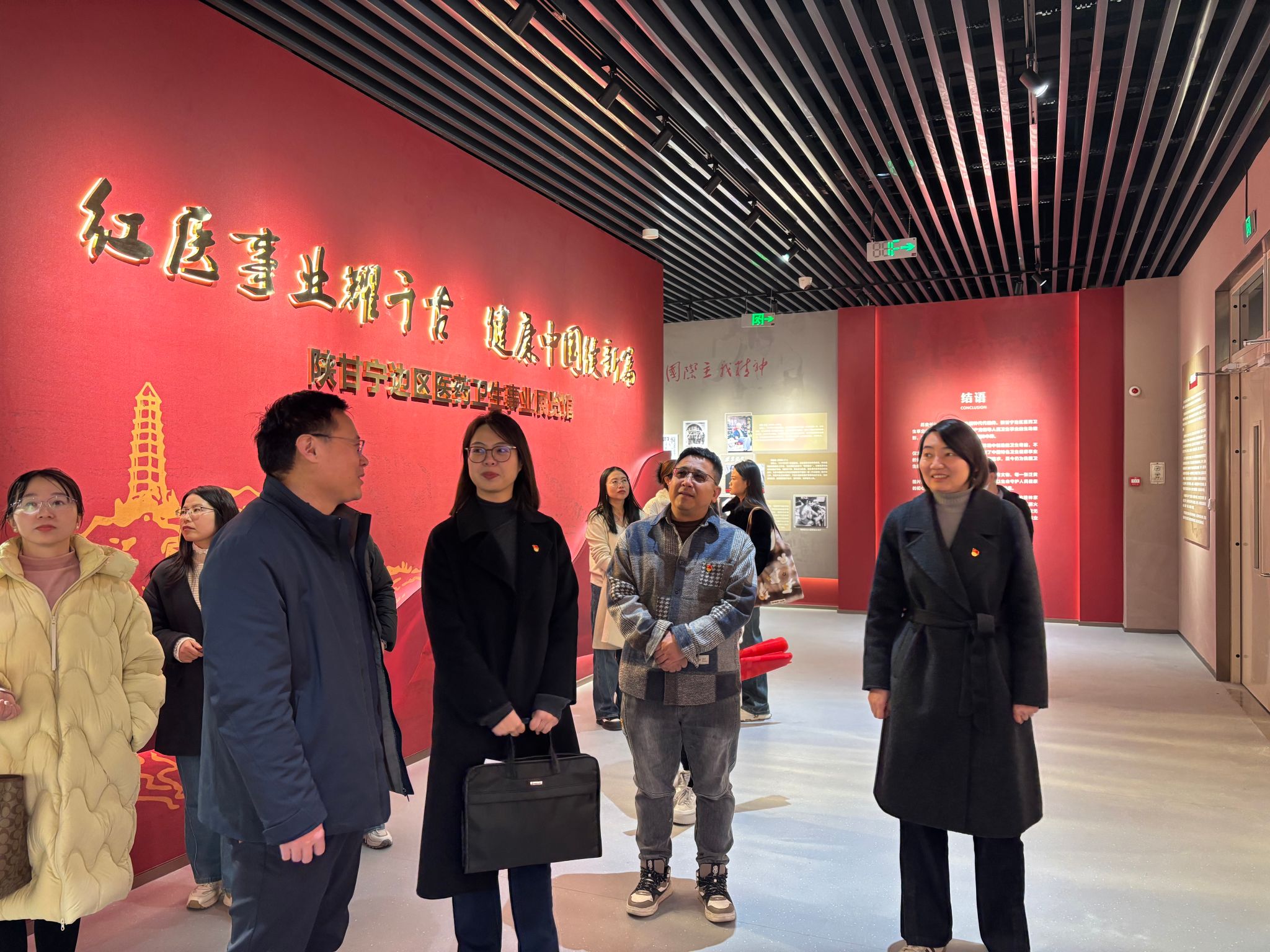 签约仪式结束后,两公司党员教师一同前往陕西中医药博物馆红医馆开展主题党日活动。在张亚军教授的生动讲解下,大家深入学习革命战争时期根据地医疗卫生事业发展的艰辛历程与感人事迹,深刻感悟了“红医精神”的崇高内涵与时代价值。