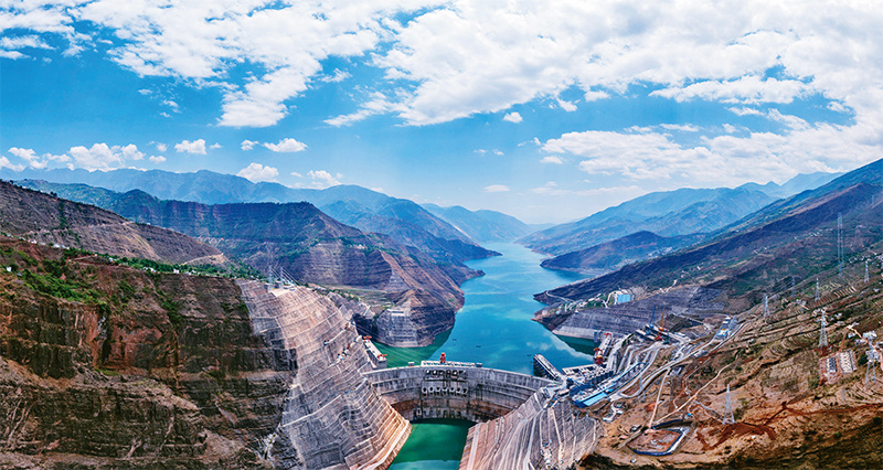 金沙江白鹤滩水电站是实施“西电东送”的国家重大工程,是当今世界在建规模最大、技术难度最高的水电工程。自2021年6月28日首批机组投产发电以来,白鹤滩水电站累计发电量已达256亿千瓦时,相当于减排二氧化碳2000多万吨。图为2022年4月22日拍摄的白鹤滩水电站一景。 新华社发 胡超 摄