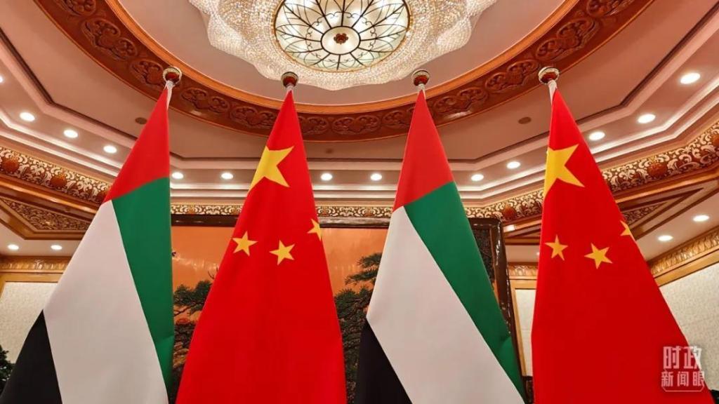阿拉伯联合酋长国国旗与五星红旗。(总台央视记者杨立峰拍摄)