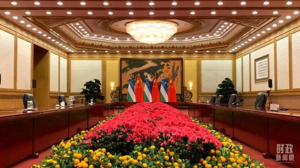 中国与乌兹别克斯坦两国元首会谈开始前的现场。(总台央视记者段德文拍摄)