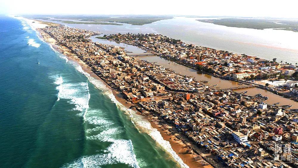 2021年11月,塞内加尔圣路易斯,位于塞内加尔河顶部和大西洋海滩之间的房屋受到海浪侵蚀。专家表示主要原因是全球变暖导致海平面上升。(图/视觉中国)