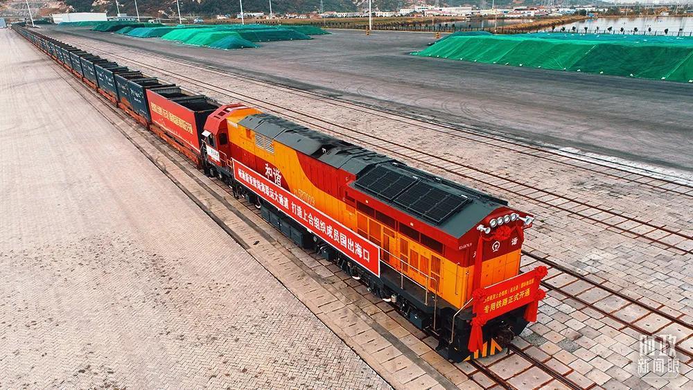 2021年10月,江苏连云港,上合组织国际物流园专用铁路正式开通。(图/视觉中国)